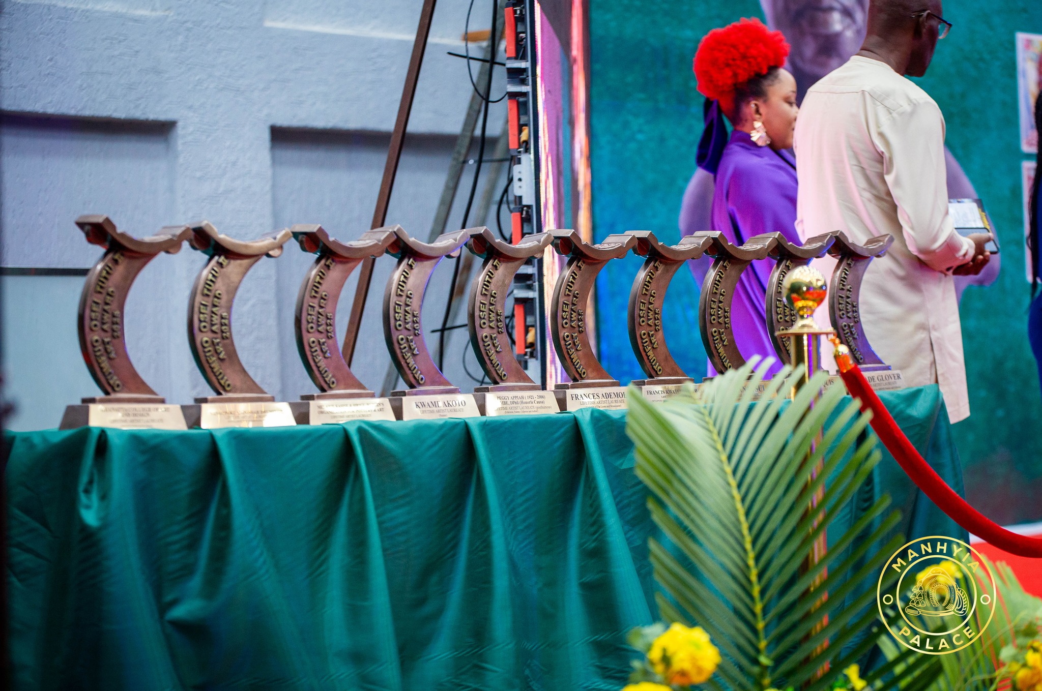 In their glorious ages, eight of the ten artists attended the event at the Manhyia Palace in Kumasi, in the company of their families and friends. Of the remaining two, the late Peggy Appiah was represented by her son-in-law, while the aging Francis Kwatei was represented by his granddaughter.