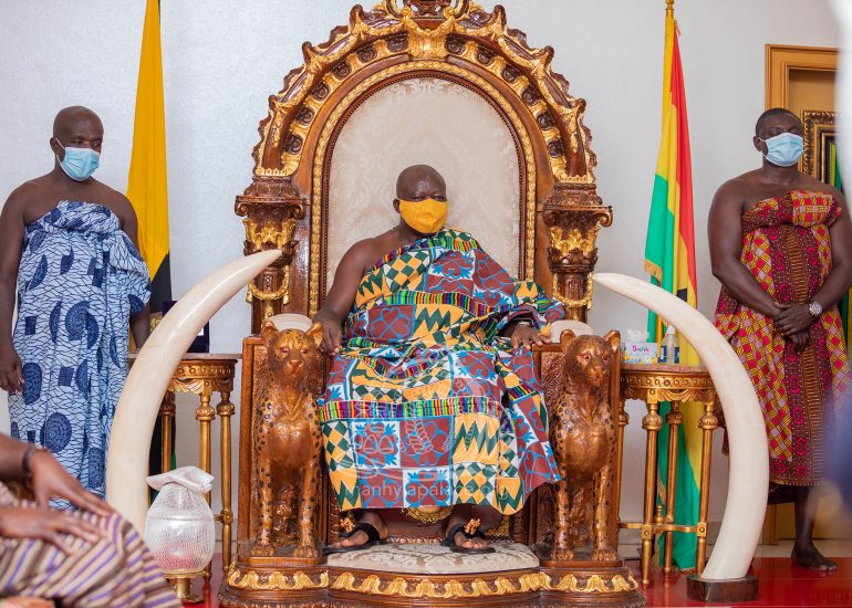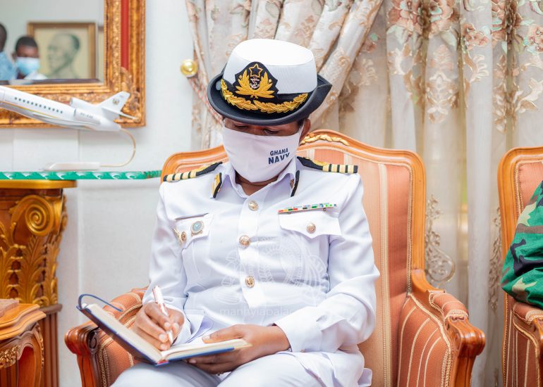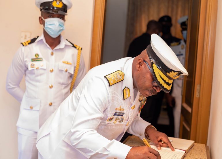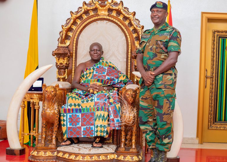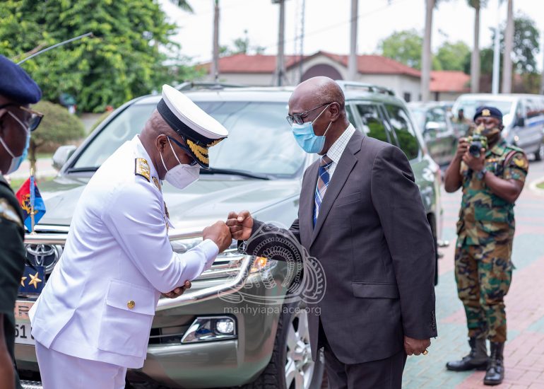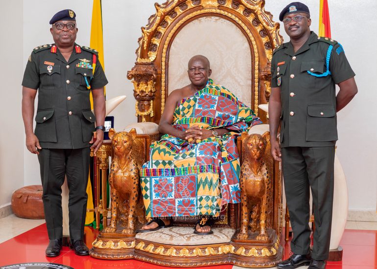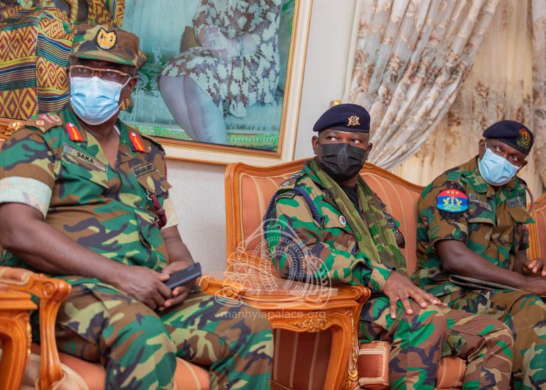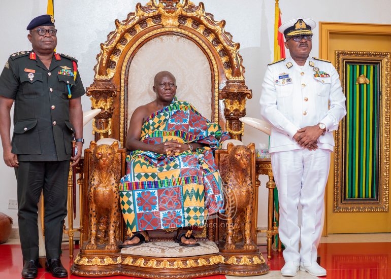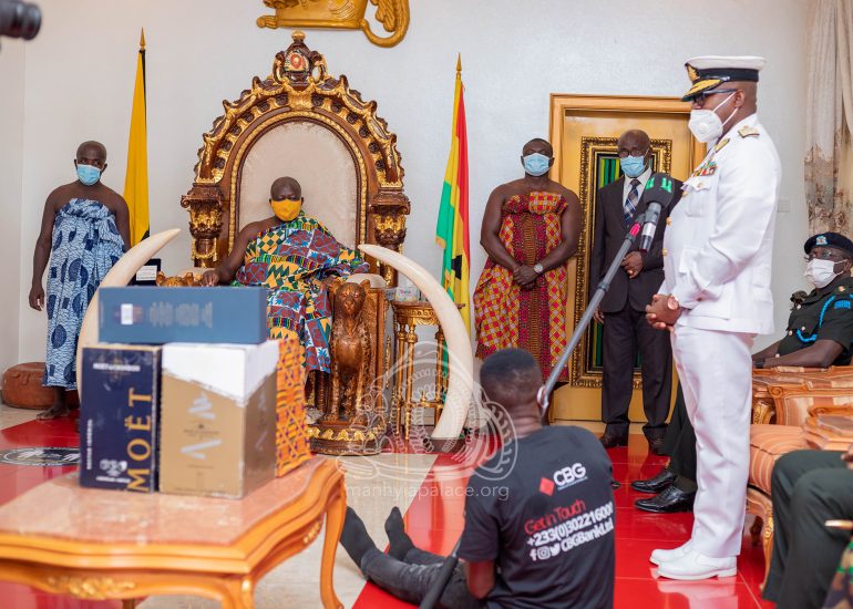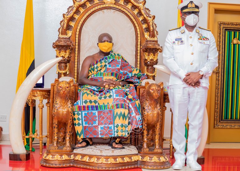 Newly appointed Chief of Defense Staff, Vice Admiral Seth Amoama, together with leadership of the Ghana Armed Forces today paid a courtesy call on the Asantehene, Otumfuo Osei Tutu II at the Manhyia Palace.