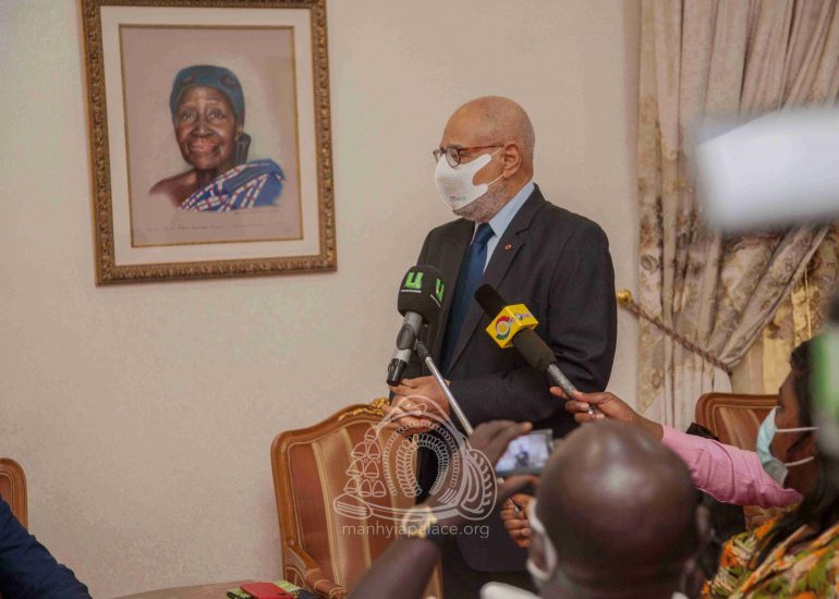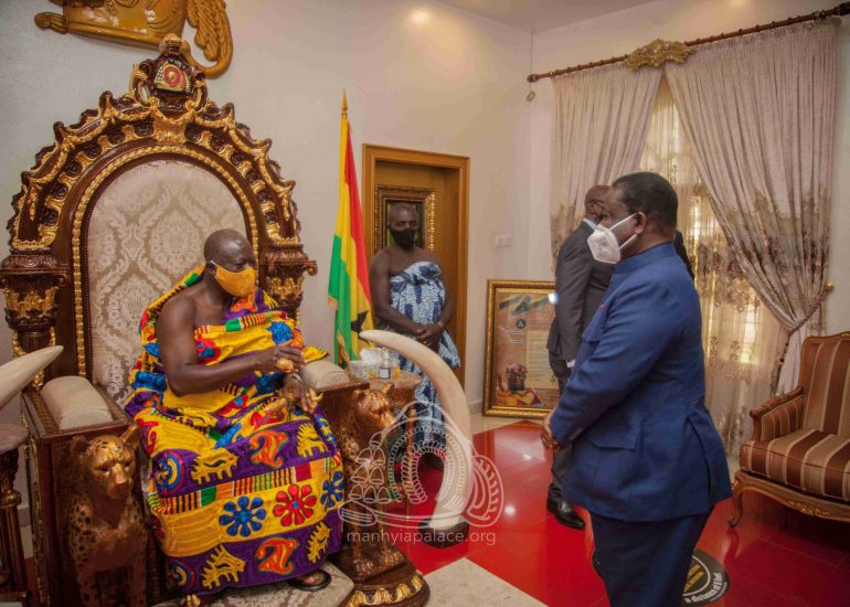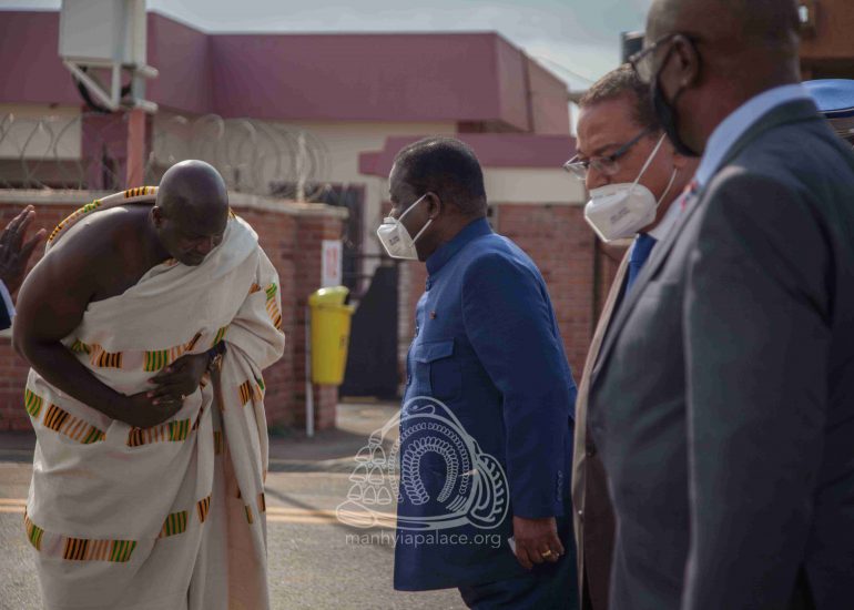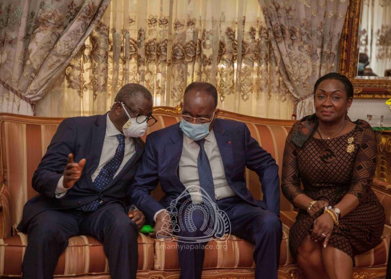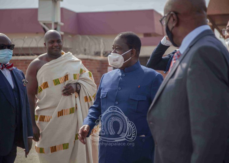 His Excellency Henri Konan Bédié, Former President of Côte d’Ivoire, today led an official delegation to Manhyia Palace. At the center of the official visit was a private discussion between His Majesty and His Excellency on mutually beneficial issues.