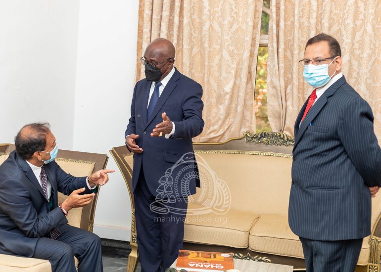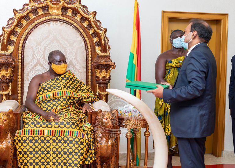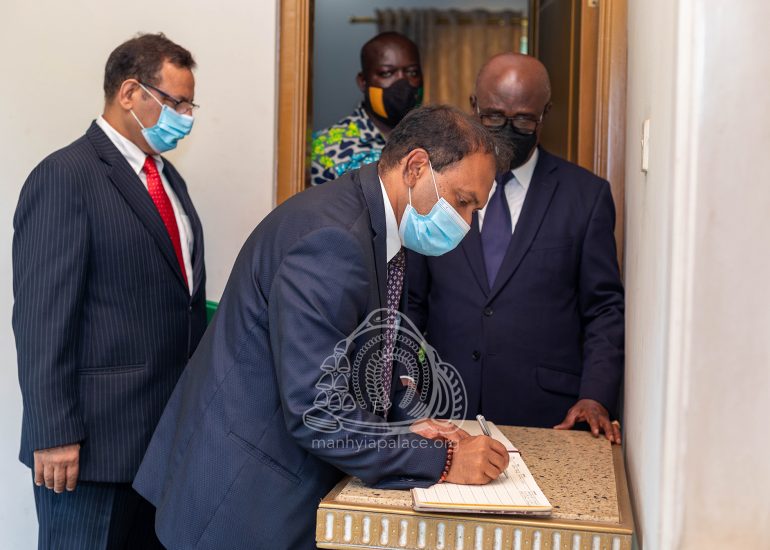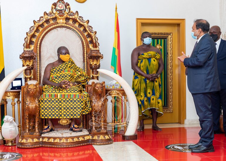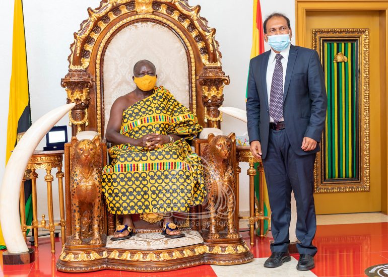 Indian High Commissioner to Ghana H.E. Mr. Sugandh Rajaram visits Asantehene at the Manhyia PalaceApril 21, 2021Photo StoryIndian High Commissioner to Ghana H.E. Mr. Sugandh Rajaram visits Asantehene at the Manhyia Palace.