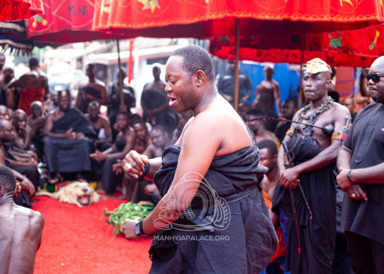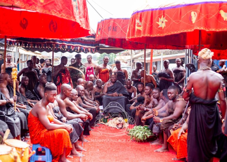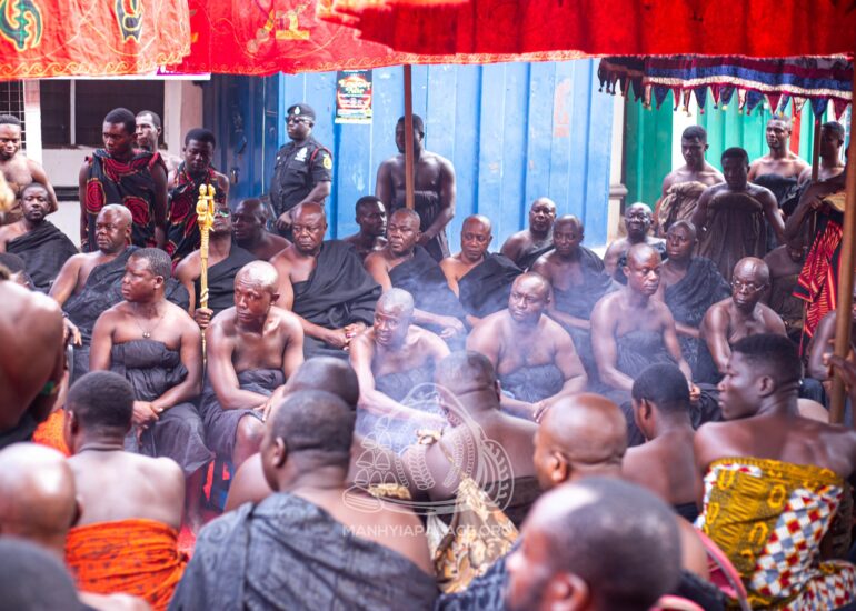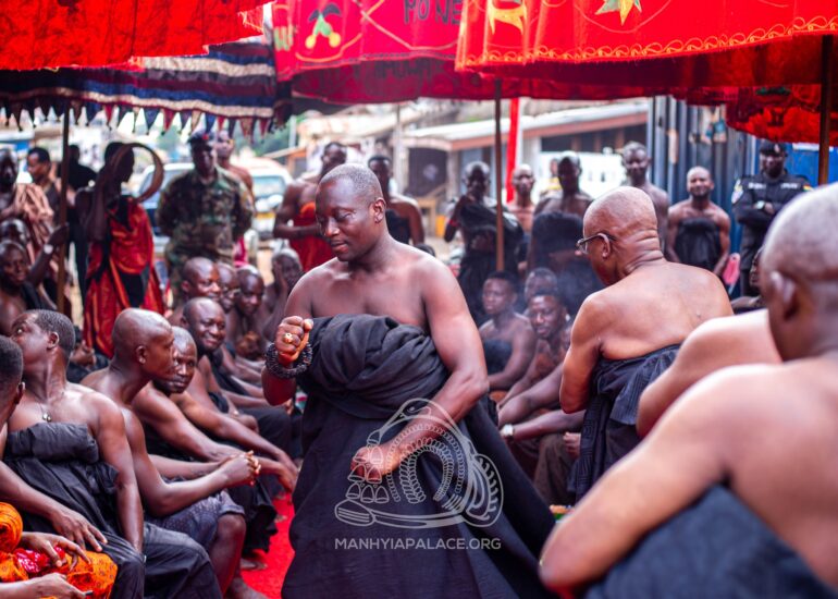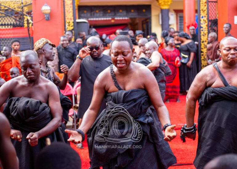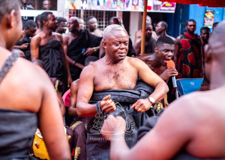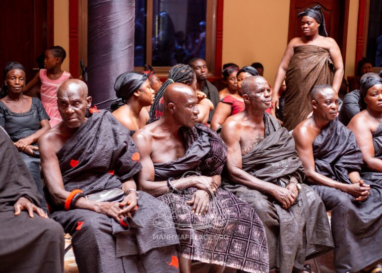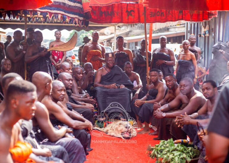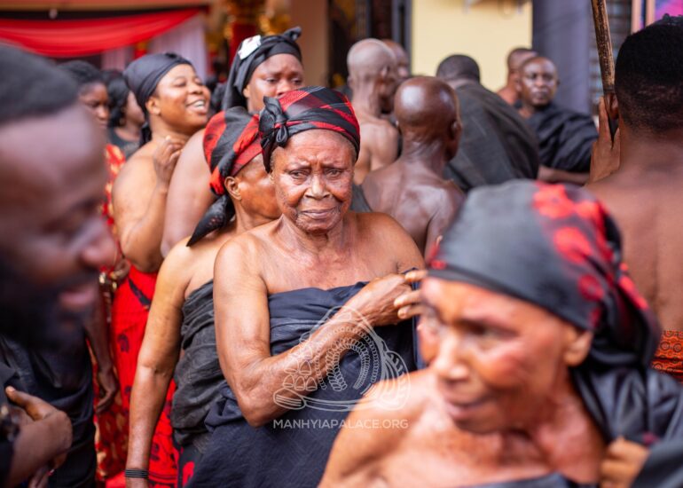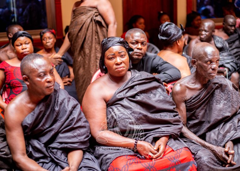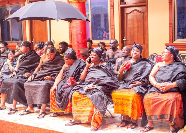 Asantehene, Otumfuo Osei Tutu II mourns Obaapanin Akua Apemfa (sister of late Asantehemaa, Nana Afia Kobi Serwaa Ampem II) at Krofrom, Kumasi.