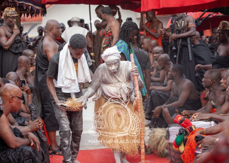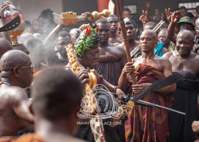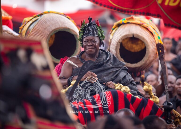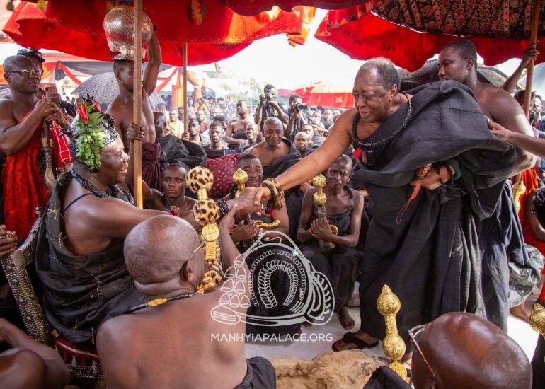 On Monday, February 27, 2023, His Majesty, Otumfuo Osei Tutu II, attended the Doteyie of Nana Frimpong Anokye Ababio, the paramount chief of Asante Agona
