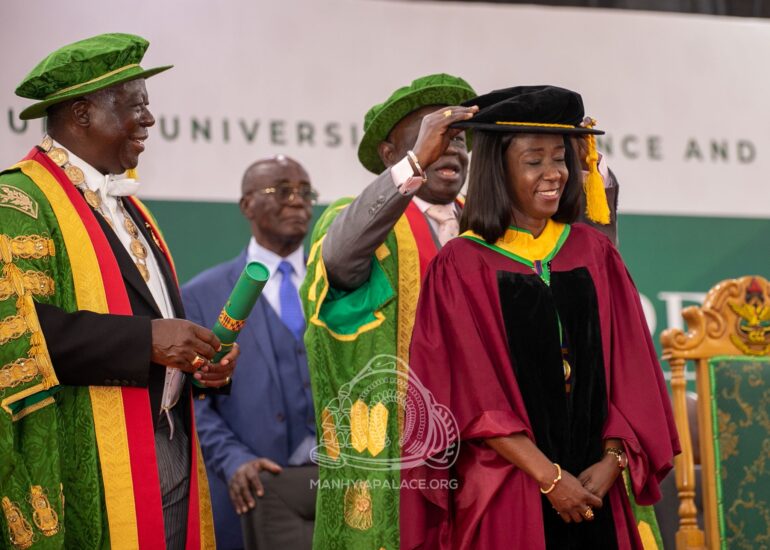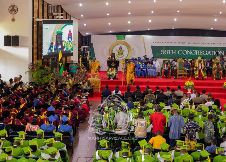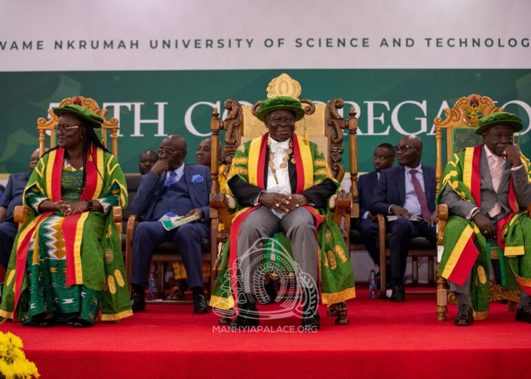 Otumfuo Osei Tutu II has conferred Doctor of Philosophy (PhD) degrees on 124 students of the Kwame Nkrumah University of Science and Technology (KNUST) at the 56th Congregation of the institution.