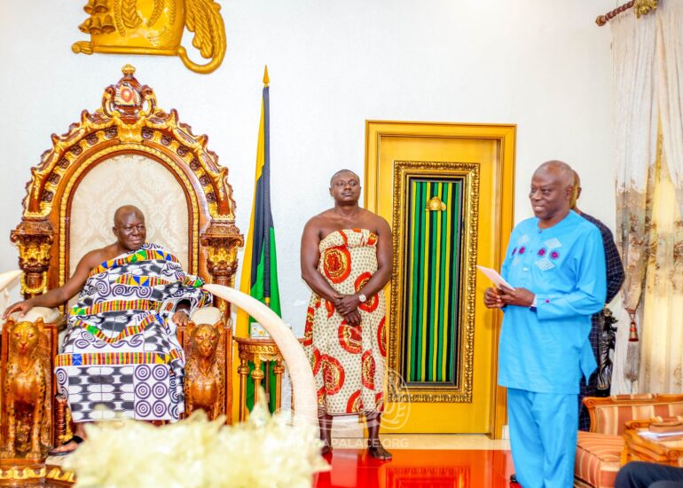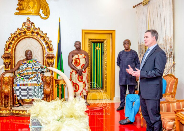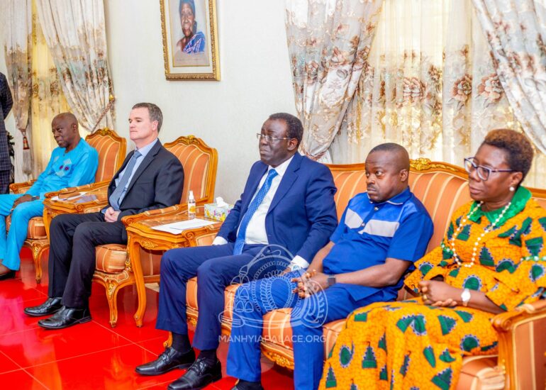 The leadership of Newmont paid a courtesy call on Asantehene Otumfuo Osei Tutu II at Manhyia Palace