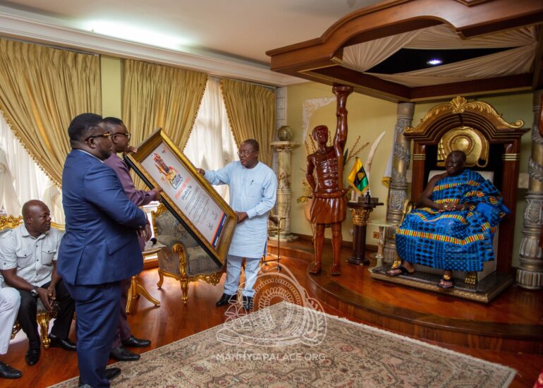 The Management and Board of Directors of Ghana Post called on His Majesty Otumfuo Osei Tutu II, Asantehene, at the Manhyia Palace.